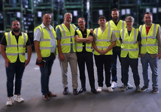 Bei der Übergabe der Trikots anlässlich einer Probe im Dorfgemeinschaftshaus Lauerbach durch die Spender an Mitglieder der Dorfkapelle: die drei Uhrigs – Kai Uhrig (Firma Klinger, Bad König), Jürgen Uhrig (Firma A-Z, Michelstadt) ...