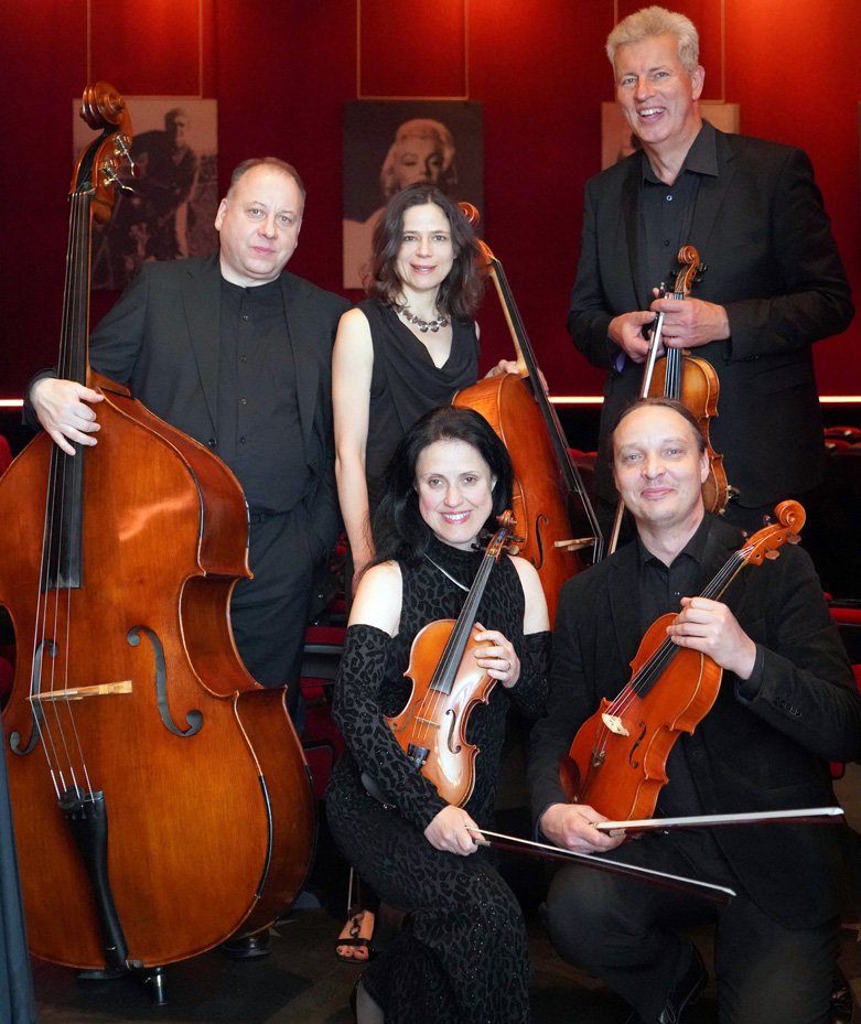 Fünf Berufsmusiker des Projekts „Cineastrings“ gastieren am Freitag, 6. März, ab 19 Uhr, zugunsten des Vereins Waisenkinder Tansania e. V. im Volksbank Atrium im Haus der Energie in Erbach. Foto: Arne Müller/Cineastrings Bernhard ...