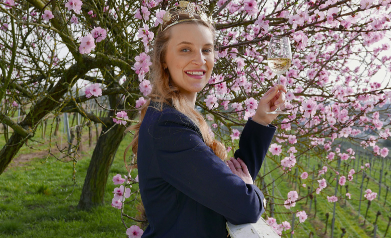 Chiara Fischer, Gebietsweinkönigin im Weinbaugebiet Hessische Bergstraße empfiehlt den „Bergsträßer Weintreff“. Foto: Verkehrsverein Bensheim Weintreff Bergstraße: 180 Weine und Schaumweine probieren Pressedienst Verkehrsve...