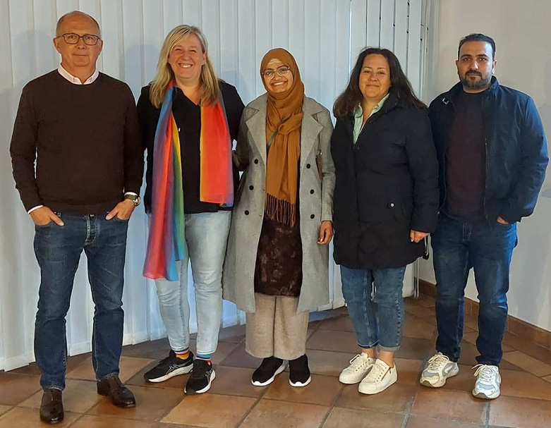 Blumen für die neue Stadtverordnetenvorsteherin in Michelstadt von Bürgermeister Dr. Tobias Robischon, der gemeinsam mit den Fraktionsvorsitzenden Dr. Michael Hüttenberger (SPD), Dr. Jonas Schönefeld und Julia Giebenhain (beide GRÜNE) sowie Tim Koch...