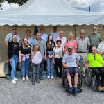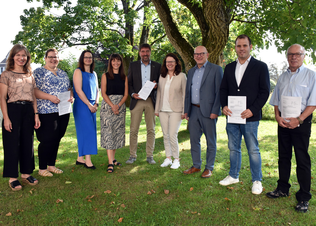 Freuen sich über Fördermittel für wichtige Projekt: Marion Fischer (Bewilligungsstelle im Landratsamt), Anne Aßmus, Ines Günther-Laake und Rekha Krings (IGO), Dr. Jürgen Jung und Bürgermeisterin Deirdre Heckler (Burglandschaft e.V.), Landrat Frank Matiaske, Max Janowicz (Therapiezentrum Janowicz) und Klaus Sauer (Gemeinde Höchst, von links). Foto: Stefan Toepfer/Kreisverwaltung