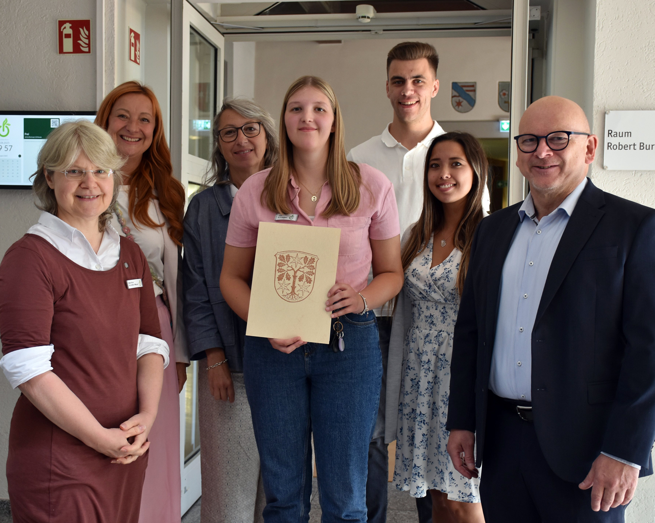 Die für Personalentwicklung zuständige Mitarbeiterin Jasmin Müller gratulierte Schnauber zum erfolgreichen Studienabschluss genauso wie Personalamtsleiterin Petra Stephan, die Gleichstellungsbeauftragte Petra Karg, Martina Schäfer-Mayer vom Personalrat und Janis Vay, der Vorsitzende der Jugend- und Auszubildendenvertretung.
