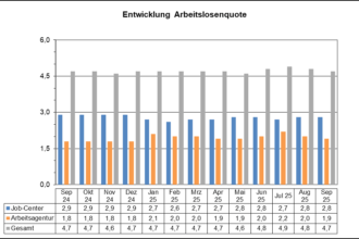 BERGSTRASSE / HEPPENHEIM. -Die Arbeitslosigkeit ist im Kreis Bergstraße im August 2025 gesunken. 7.121 Menschen waren arbeitslos gemeldet, 51 Personen weniger als im Juli, aber 253 Personen beziehungsweise 3,7 Prozent mehr als vor einem Jahr.