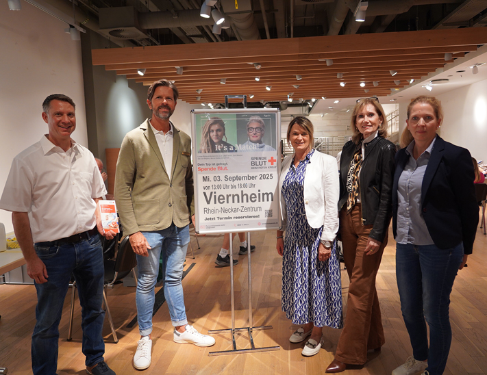 Um die Präventionsarbeit zu diesem Thema im Kreis noch weiter auszubauen, war die Erste Kreisbeigeordnete und Gesundheitsdezernentin Angelika Beckenbach gemeinsam mit dem Centermanager des Rhein-Neckar-Zentrums Dani Marquardt sowie dem Referent Spenderbindung des DRK-Blutspendedienstes Baden-Württemberg/Hessen Eric Max sowie DRK-Helferinnen und Helfern zu einem Blutspende-Termin vor Ort in Viernheim.