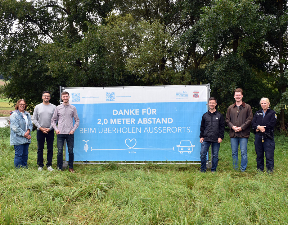Mit der Landeskampagne „Mit Abstand sicher unterwegs“ unterstützt die Arbeitsgemeinschaft Nahmobilität Hessen (AGNH) die Kommunen bei der Sichtbarmachung dieser Verkehrsregel in den Kommunen. Fränkisch-Crumbach macht als erste Gemeinde des Odenwaldkreises von dem Angebot Gebrauch.