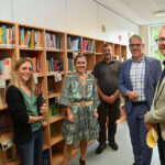Die Erste Kreisbeigeordnete Angelika Beckenbach (Mitte) klärt zusammen mit Michaela Weber (PauLa NORIE), Irena Wolf (Leitung Geriatrische Tagesklinik des St. Marien Krankenhauses) in Begleitung von ihrem Mann, Alexander Scholl (designierter Bürgermeister von Lampertheim), Christina Adler-Schäfer (PauLa NORIE), Bürgermeister Gottfried Störmer, Jennifer Jarke (Fachbereichsleitung Gesundheitsversorgung des Gesundheitsamtes), Selina Werner-Celikkan (Referentin der Geschäftsführung des St. Marien Krankenhauses) und Florian Busse (Geschäftsführer des Krankenhauses, von links) über die Knochenkrankheit auf.