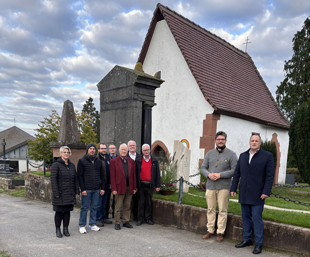 Bürgermeister Christian Kehrer (rechts) begrüßte zur Einweihung der Sternenkinder-Grabstätte in Beerfelden neben Pfarrer Roland Bahre (links daneben) Mitglieder des Lions-Clubs Eberbach, Vertreter der evangelischen Kirchengemeinde Beerfelden und Mareike Sauer vom Bestattungshaus Ihrig. Fotos: Pressedienst Oberzent