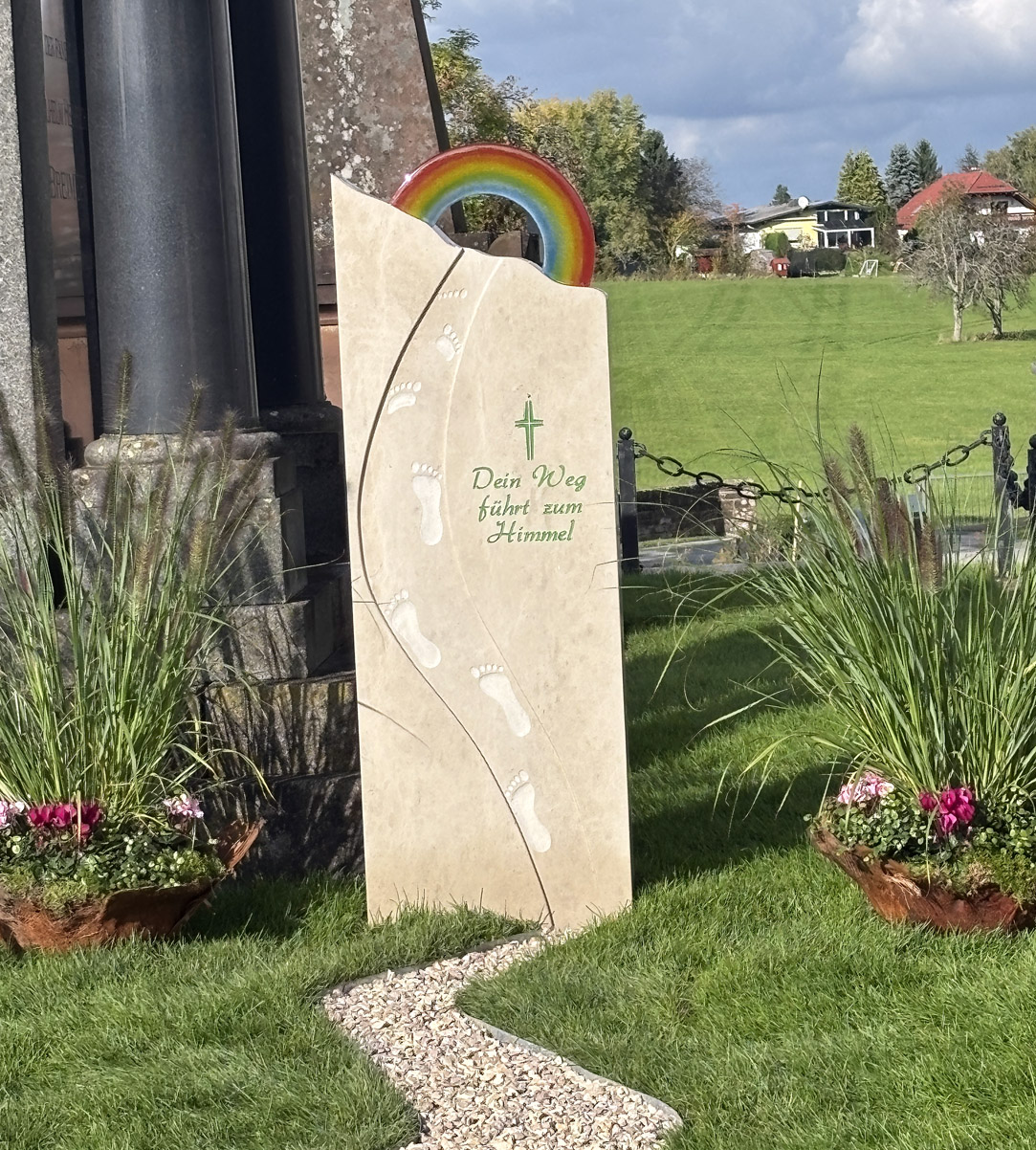 Der Gedenkstein der neuen Sternenkinder-Grabstätte auf dem Friedhof in Beerfelden.