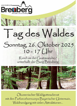 Der Tag beginnt um 10 Uhr mit einem ökumenischen Waldgottesdienst mit den Parforcehorncorps Bayerischer Untermain. Danach warten auf dem Jugendzeltplatz wie auf einem Rundgang durch den Wald zahlreiche Attraktionen. Außerdem gibt es wieder das beliebte Rundwegequiz für Klein und Groß. Selbstverständlich ist auch hier für Speisen und Getränke gesorgt. Der Eintritt ist frei!