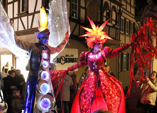 Zu einem besonderen Rahmenprogramm beim Bensheimer >Nightshopping< gehören auch Stelzenläufer. Archivfoto: Pressedienst Bensheim