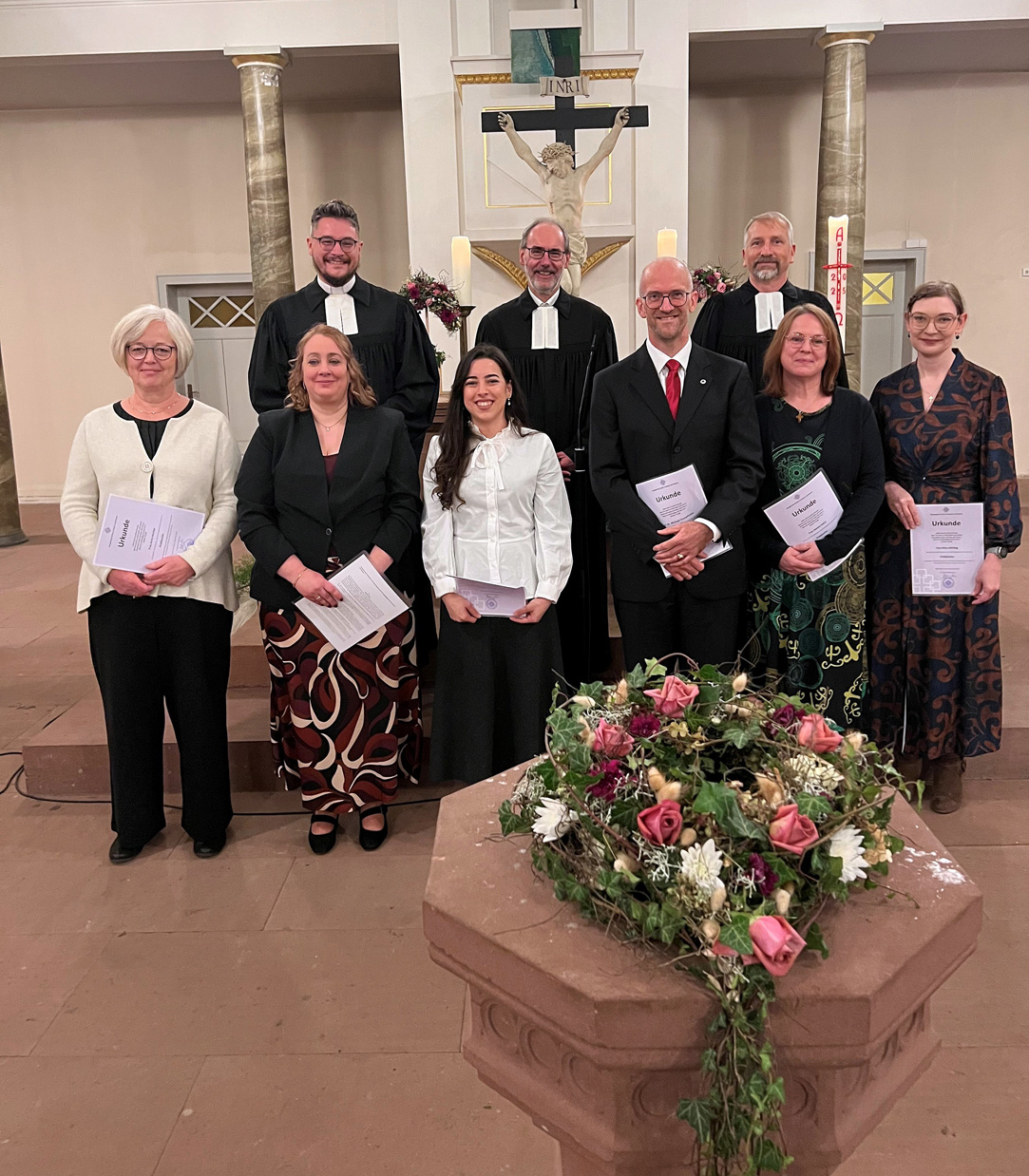 BEERFELDEN. -Sechs neue Prädikanten wurden im Rahmen eines Gottesdienstes in der evangelischen Martinskirche in Beerfelden offiziell mit ihrem Dienst beauftragt und für ihren weiteren Weg gesegnet. Sie werden künftig ehrenamtlich eigenständig Gottesdienste gestalten, eigene Predigten verfassen und so das Wort Gottes verkündigen, ebenso können sie taufen und mit der Gemeinde das Abendmahl feiern.