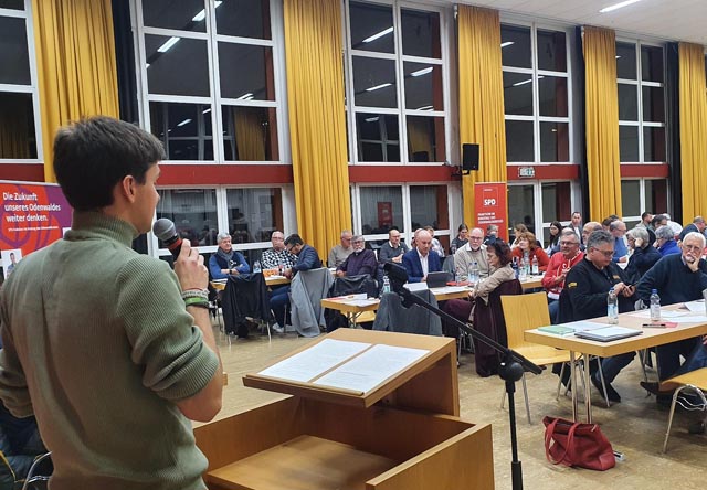 Konrad Kißling bringt die zuvor im Unterbezirksvorstand einstimmig beschlossene Liste ein, eine Liste mit „Menschen, die sich einbringen, die sich kümmern, die Verantwortung übernehmen – ehrenamtlich, mit Herzblut und ohne großes Aufheben. Die Gesichter von Nachbarinnen, Vereinskollegen, Lehrerinnen, Feuerwehrleuten, Elternbeiräten.“