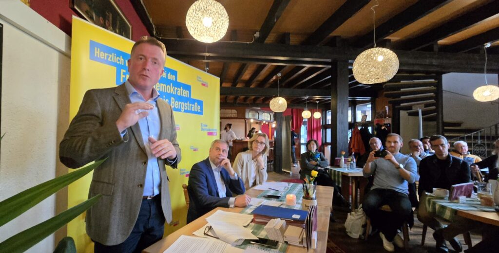 Knapp 50 Mitglieder hatten sich eingefunden. Im Mittelpunkt stand die Listenaufstellung der Kandidaten für die Kreistagswahl im März 2026. Versammlungsleiter Till Mansmann, bis zur vorgezogenen Wahl im Februar dieses Jahres Mitglied des Bundestages für die Freidemokraten, sprach von „schwierigen Zeiten für unsere Partei“.