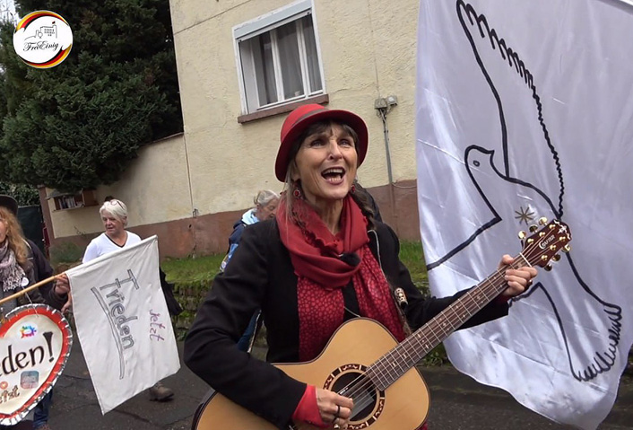 Mit dem Lied „Wir hör’n nicht auf“ richteten die Demonstranten in Neustadt/Weinstraße ihren Blick auf Frieden und Gerechtigkeit. Fotos: Pressedienst FreiEinig