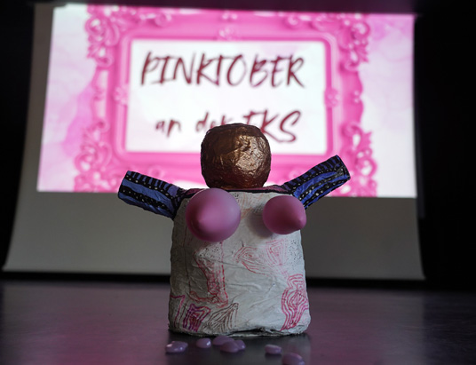 Um hierfür Bewusstsein zu schaffen, hatte sich der Kreis Bergstraße erstmals wieder am weltweiten Aktionsmonat „Pinktober“ zusammen mit dem Kreiskrankenhaus Bergstraße beteiligt. Dazu haben sich die Schüler der Martin-Buber-Schule in Heppenheim sowie der Erich-Kästner-Schule in Bürstadt im Rahmen von Informationsveranstaltungen gemeinsam mit Fachärztinnen künstlerisch mit Brustkrebs und seiner Prävention auseinandergesetzt.