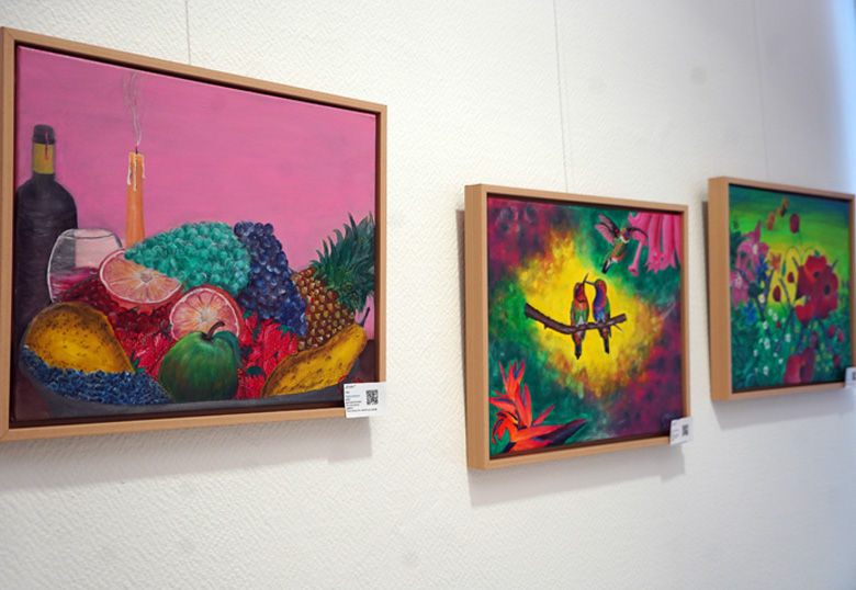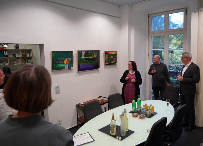 Bei einer kleinen Vernissage im Büro des Bergsträßer Landrats Christian Engelhardt präsentierte die Künstlerin Marion Salerno einige ihrer Werke.