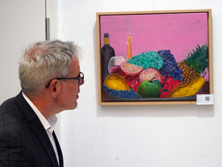 Landrat Christian Engelhardt würdigte das Engagement und die Ausdruckskraft der Malerin: „Die Kunst von Marion Salerno berührt. Sie zeigt, wie stark Kreativität und Lebensmut zusammengehören.“