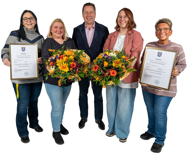 Herzlich gratuliert wurde Mirela Omicevic (zweite von links) und Sandra Brummer (zweite von rechts) zum Examen als Staatlich anerkannte Altenpflegerinnen von Michael Vetter, Melanie Trautmann (rechts) und Katja Keimel (links). Foto: Gert R. von Neindorff