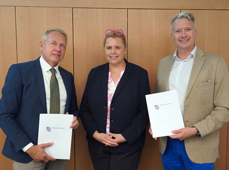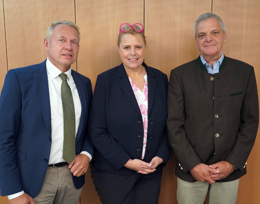 Die Leiterin der Abteilung Ordnung- und Gewerbewesen der Kreisverwaltung, Alexandra Radies, mit dem bisherigen Vorsitzenden des Jagdbeirates Udo Pfeil (links) und dem neuen Vorsitzenden Professor Joachim Kilian (rechts).