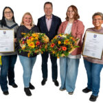 Pfarrer Hoffmann saß mit seinen – oder eher Adams – Gedanken, die er nicht nur vorlas, sondern wie in einem Dialog interpretierte, nicht allein vor seinem Publikum. Musikalisch einfühlsam unterteilt wurden die einzelnen Abschnitte von „Folks“, einem Quartett, das getreu seinem Namen Irish-Folk-Musik spielte, die einen ganz eigenen Kontrapunkt zu den Worten bildete. Ein drittes trat hinzu: Bilder von Mechthild Solf.