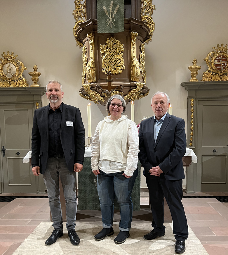 Marion Muhn wurde von Dekan Carsten Stein (links) und Präses Egon Scheuermann als neue Dekanatsreferentin für Hospiz- und Trauerarbeit eingeführt. Foto: Bernhard Bergmann