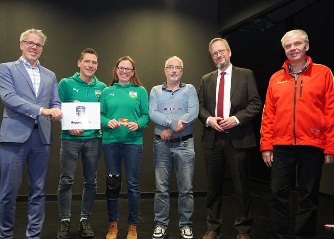 Heppenheim: Landrat Christian Engelhardt (links) mit einigen ehrenamtlichen Helfern aus Heppenheim, denen der Landrat in Rimbach die Ehrenamts-Card überreichte.