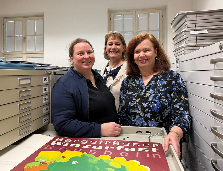 Die Leiterin des Stadtarchivs Claudia Sosniak (Bildmitte) mit ihren Kolleginnen Daniela Druschel (links) und Ingrid Krämer-Wick. Foto: Pressedienst Bensheim