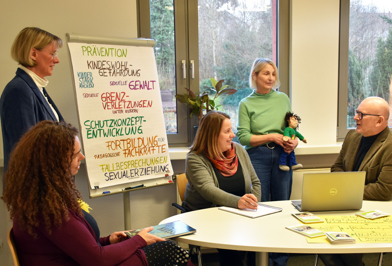 Zu diesem Feld der Unterstützung gehört auch die Beratung von Kindertagesstätten, Schulen und Vereinen bei der Erstellung von Schutzkonzepten gegen Gewalt und sexuellen Missbrauch. „Hier haben wir in den vergangenen Jahren viel geleistet, so dass es nun schon fast überall im Kreis solche Schutzkonzepte gibt“, berichtet Veigl. Solche Konzepte zu haben beziehungsweise zu entwickeln, ist gesetzlich vorgeschrieben.