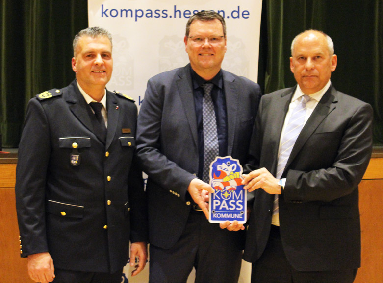 KOMPASS steht für KOMmunalProgrAmmSicherheitsSiegel und ist ein Angebot des hessischen Innenministeriums an die Städte und Gemeinden. Das Programm hat zum Ziel, die Sicherheitsarchitektur in den Kommunen individuell weiterzuentwickeln und passgenaue Lösungen vor Ort herauszuarbeiten. Um das zu erreichen, wird Bestehendes auf den Prüfstand gestellt und eine Maßnahmenliste erstellt, die die Sicherheit vor Ort erhöhen soll.