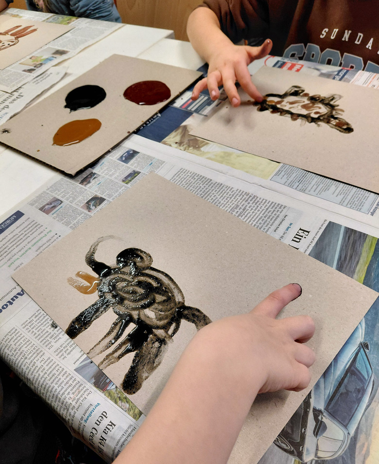Der Museumsbesuch passte thematisch besonders gut, da sich die Gruppe aktuell intensiv mit dem Thema Farben und deren Herstellung beschäftigt. Das angebotene Kinder-Workshop-Programm zum Thema Höhlenmalerei erwies sich daher als ideale Ergänzung. Im Atelier- und Werkstattbereich erfuhren die Kinder anschaulich, wie bereits in der Steinzeit Farben aus natürlichen Materialien hergestellt und für Höhlenmalereien genutzt wurden.