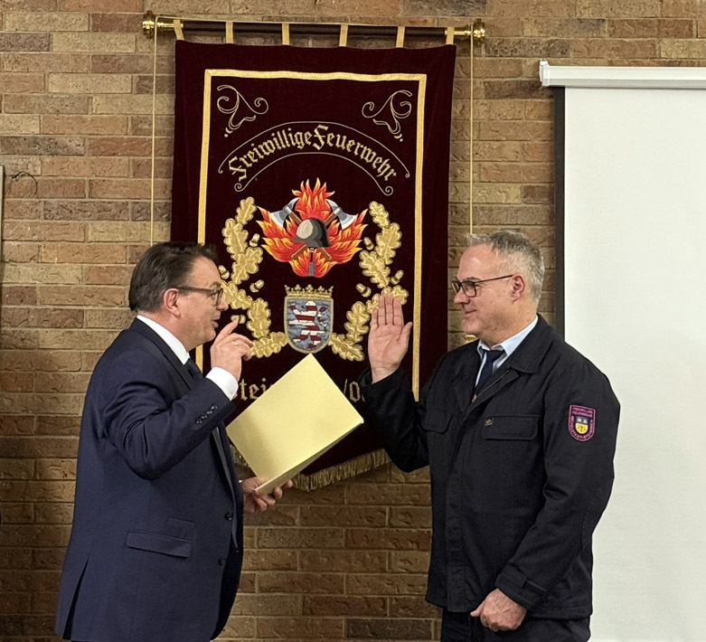 Alle Funktionen – vom 1. und 2. Vorsitzenden über Rechner und Schriftführer bis hin zu den Kassenprüfern – konnten erfolgreich besetzt werden. Zudem wurde ein neuer Wehrführer gewählt: Jens Walther stellte sich zur Wahl, nahm diese an und wurde noch während der Versammlung von Bürgermeister Dr. Robischon offiziell vereidigt.