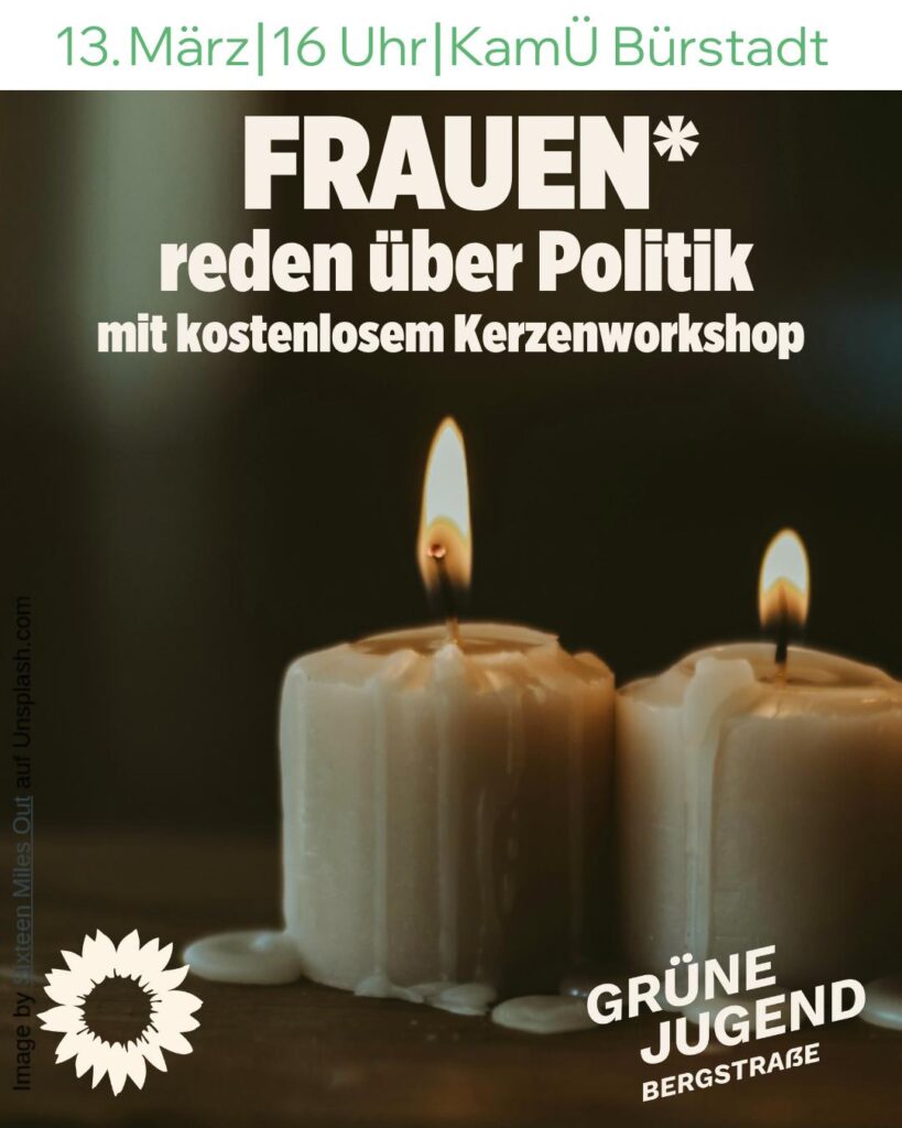 In entspannter Atmosphäre verbinden wir kreatives Arbeiten mit politischem Austausch: Gemeinsam stellen wir aus recyceltem Wachs individuelle Kerzen her und kommen dabei über die Erfahrungen von Frauen in Politik und demokratischen Prozessen ins Gespräch“, heißt es in einer Presemitteilung der Partei.