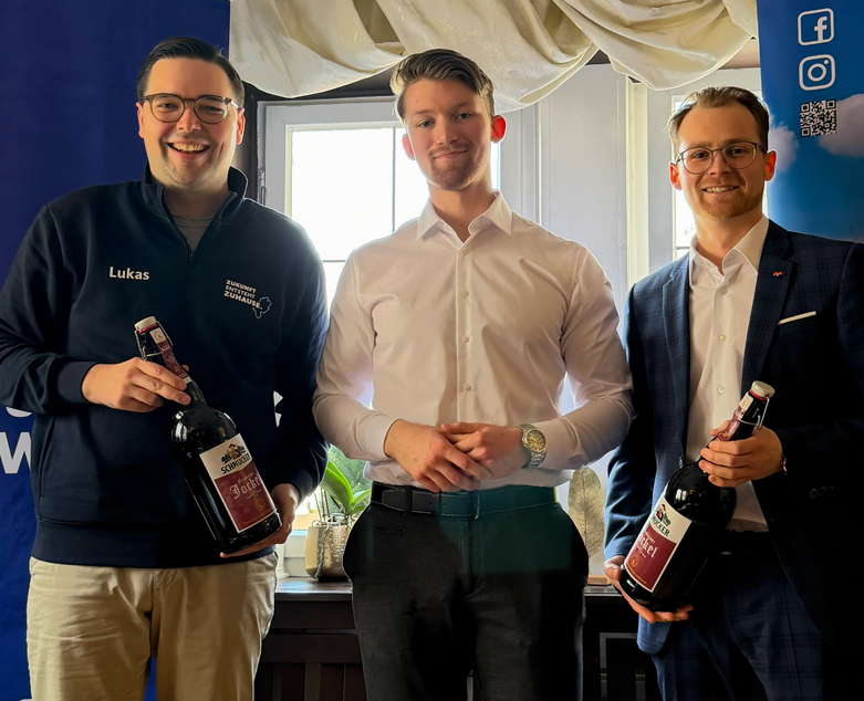 Lukas Brandscheid, Finn Cress, Yannick Ullmann (von links) nach der Vorstandswahl der JU Odenwaldkreis.