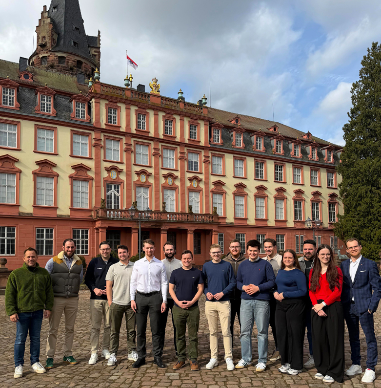 Oliver von Falkenburg, Konrad Graf zu Erbach-Erbach, Lukas Brandscheid, André Weyrauch, Finn Cress, Janis Lenz, Dominik Weyrauch, Lars Ebke, Jonas Weidmann, Leonard Bock, Till Hoffmann, Tina Kowalczyk, Alexander Emig, Maja Merg, Yannick Ullmann (von links). Fotos: Pressedienst JU Odenwaldkreis