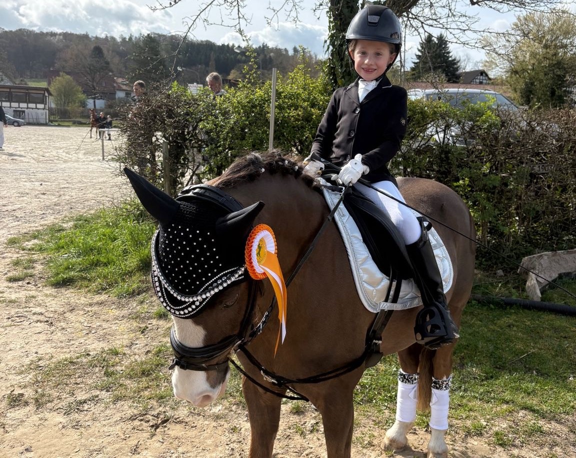 So gab es am Ostermontag für Lina-Sophie Zimmermann vom Reit- und Fahrverein Oberzent (RFVO) ein ganz besonderes Ostergeschenk: Mit einer sehr guten Wertnote von 7,7 gewann sie gemeinsam mit ihrem Pony Three-B Calypso den Reiterwettbewerb Schritt-Trab in Modautal.