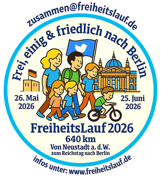 NEUSTADT / WEINSTRASSE. – Ein Organisationsteam aus verschiedenen Initiativen ruft im Mai und Juni zum Großen FreiheitsLauf 2026 auf – ein bundesweites Projekt für Freiheit, Frieden, Dialog und Grundrechte.