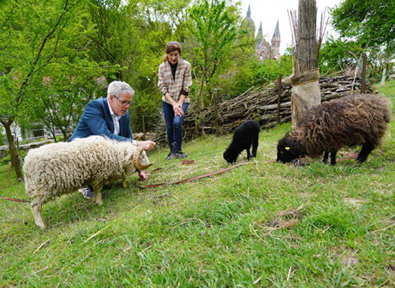 Landrat Christian Engelhardt beeindruckten die Zwergschafe von Beate Weis, die auf der Streuobstwiese leben und diese „mähen“.
