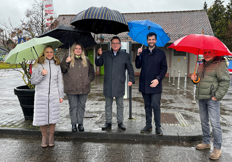 Tauschten sich bei Regenwetter an verschiedenen Standorten über Aufwertungsmöglichkeiten aus: Kulturamtsleiter Heinz Seitz, Programmverantwortlicher beim Wirtschaftsministerium Marco Ulrich, Bürgermeister Dr. Tobias Robischon, Jan...