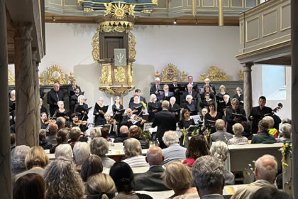 Zwei Chöre, zwei Dirigenten, ein Orchester, vier Solisten und die Orgel – eindrucksvolle Musik zum Lob Gottes füllte die Bad Königer Schlosskirche. Foto: Bernhard Bergmann Die „Königin der Instrumente...