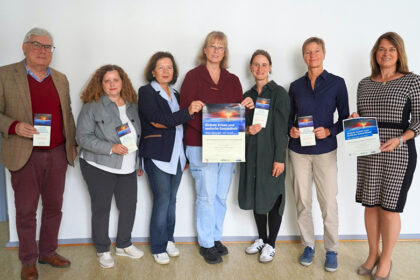Die Erste Kreisbeigeordnete und Gesundheitsdezernentin Angelika Beckenbach (6. von links) eröffnet zusammen mit Partnern die Wanderausstellung „HPV hat viele Gesichter“. Foto: Pressedienst Bergstraße ...