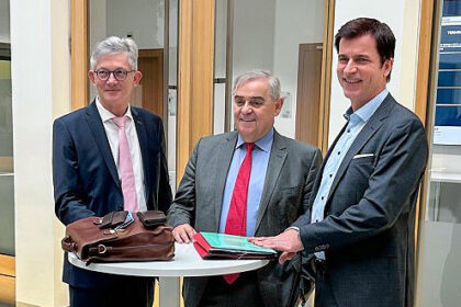 Bei der Präsentation des Rechtsgutachtens „Grundgesetzlicher Überforderungsschutz kommunaler Selbstverwaltung“: der Präsident des Deutschen Städte- und Gemeindebundes Ralph Spiegler, der ehemalige Bun...
