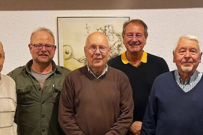Der alte und neue Vorstand des Museumsvereins Bensheim mit Arthur Kolb, Rudolf Schmitt, Kai Ahlheim, Klaus H. Jöckel, Holger Steinert, Alois Hillenbrand, Alexander Wick und Matthias Zahn (von links). ...