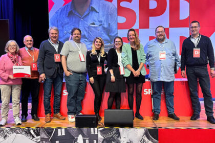 Die Bergsträsser Delegation beim Landesparteitag der Hessen-SPD in Stadtallendorf. Foto: Pressedienst SPD Bensheim Mit Zuversicht auf die Kommunalwahlen am 15. März 2026 haben sich die sozialdemokrati...