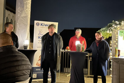 Kiwanis-Präsident Christopher Diamantidis (2. von links) begrüßt die Teilnehmenden. Umringt von Oliver Schmitz vom Kindergärtchen (links), Anna Panic von der Weinterrasse und Stefan Uhrig (2. von rech...