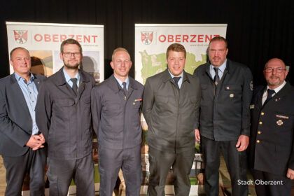 Bürgermeister Christian Kehrer, 2. stellvertretender Stadtbrandinspektor Pascal Lähn, Stadtbrandinspektor Patrick Wrba, 1. stellvertretender Stadtbrandinspektor Florian Fülöp, der ausgeschiedene Stadt...
