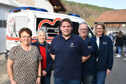 Es freuen sich: Anette Neff, Palliativärztin Dr. Agnes Reifschneider vom Herzenswunsch-Mobil, Yannick Wolf sowie Teammitglied Dieter Sedlacek und Organisatorin Kerstin Truber (von links). Foto: Presse...