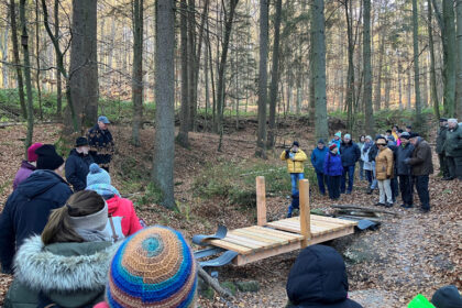 Aufmerksame Zuhörer hatte Klaus Pankow (links oben erhöht stehend) bei der Erläuterung zur Erneuerung einer der insgesamt 14 Brücken in der Obrunnschlucht. Wanderung durch die Obrunnschlucht und zur R...