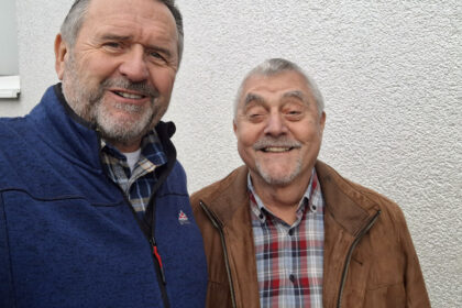 Walter Öhlenschläger, Spitzenkandidat der Freien Wählergemeinschaft Kreis Bergstraße (links), im Gespräch mit Walter Benz, dem Fraktionsvorsitzenden der Unabhängigen Bürger Viernheim (UBV) im Viernhei...