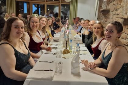 Zahlreiche Weinhoheiten mit der deutschen Weinkönigin Charlotte Weihl (Mitte) an der Spitze gaben sich zur Eröffnung des Dürkheimer Wurstmarkts 2025 am Freitagabend zusammen mit der Dürkheimer Bürgerm...