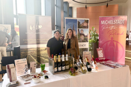 „Heiraten in Michelstadt“ und die Winzergenossenschaft Groß-Umstadt als Getränkelieferant für solche Events präsentierten sich gemeinsam bei der Hochzeitsmesse in Erbach. Foto: Pressedienst Kulturamt ...